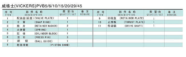 威格士油泵配件結構形式